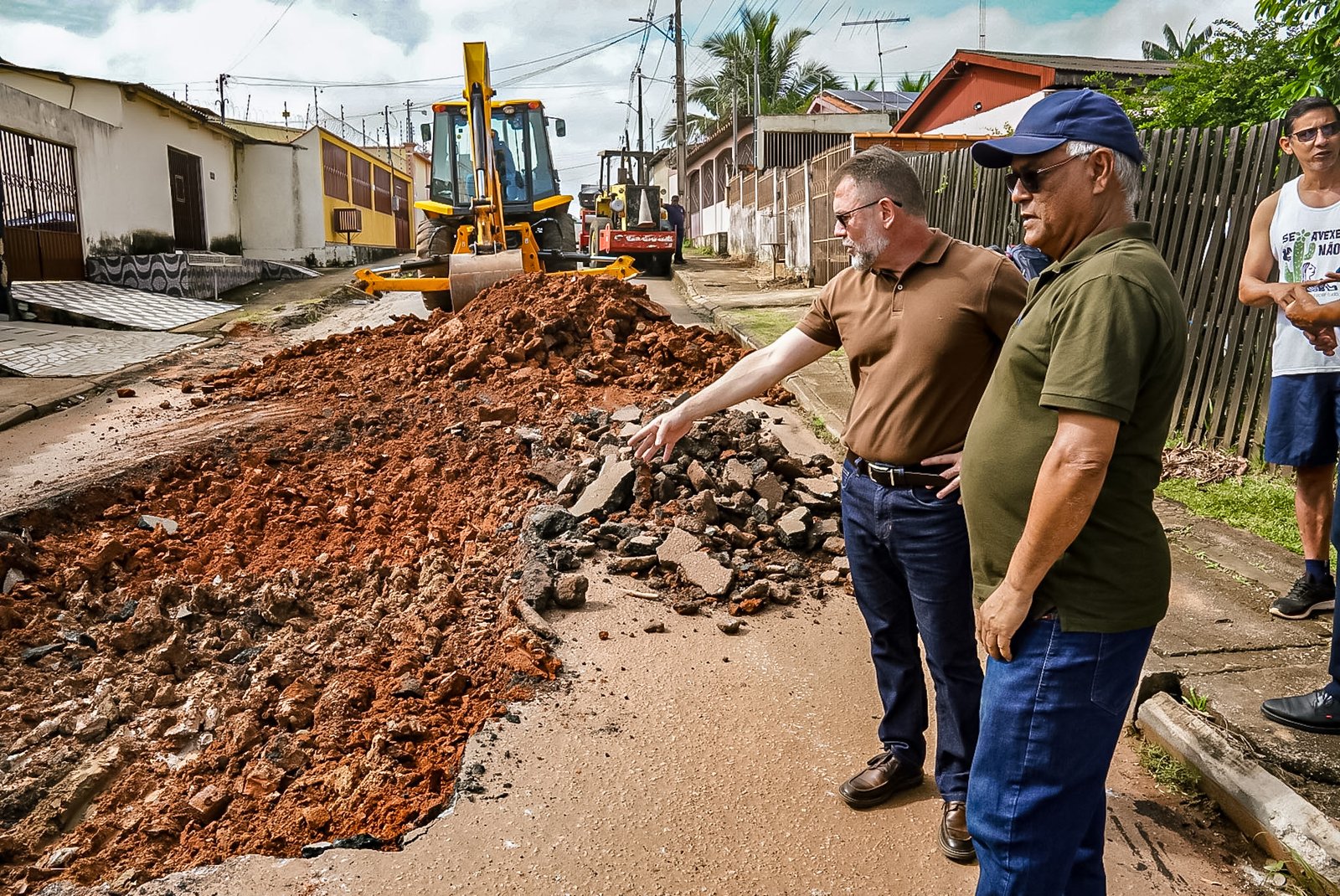 A agenda do dia incluiu ainda passagens por outros pontos da cidade para acompanhar serviços de pavimentação e conversar com moradores, em uma rotina voltada ao acompanhamento direto de demandas de ruas e manutenção viária.